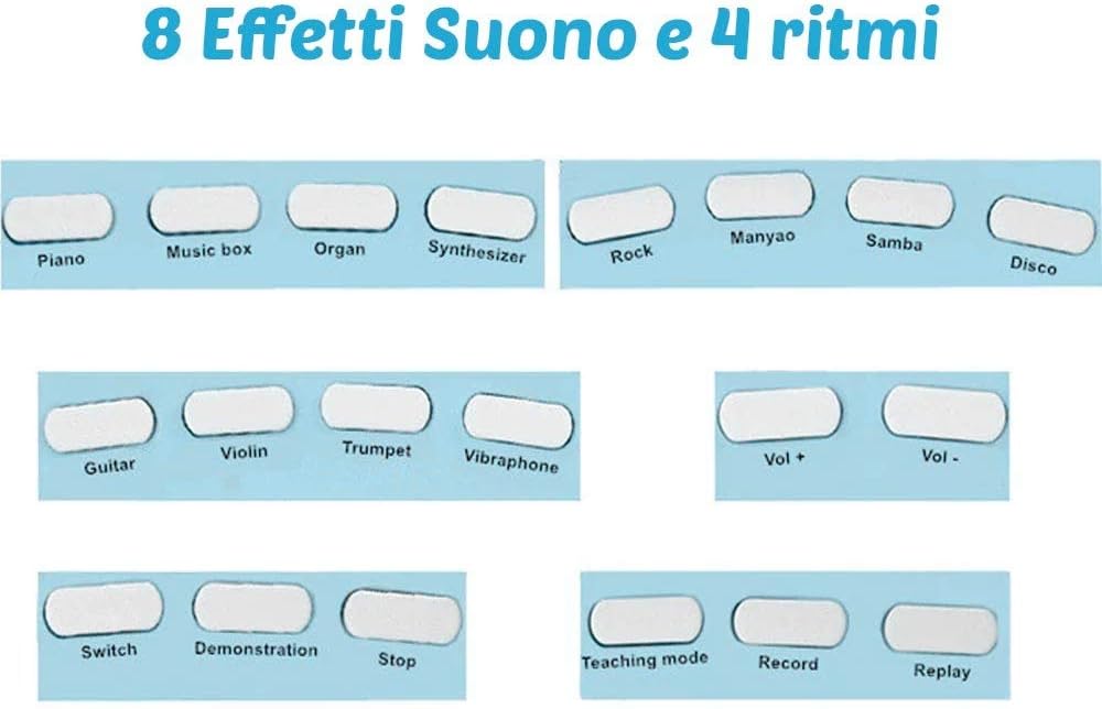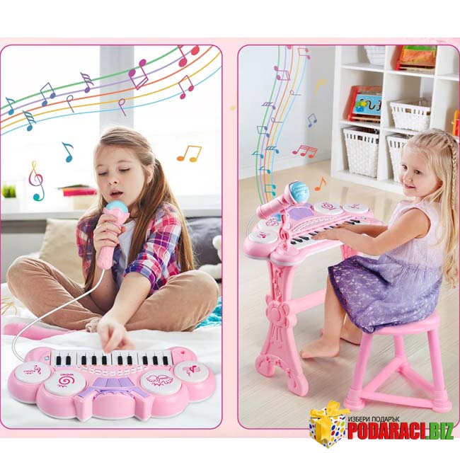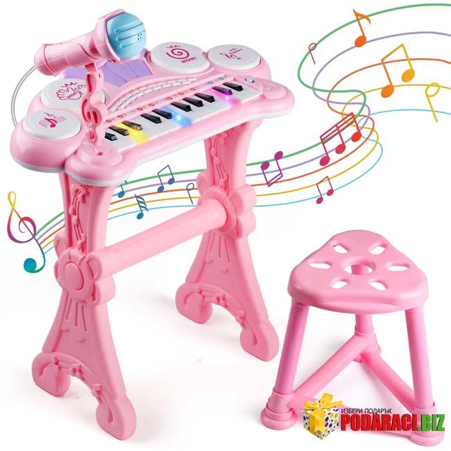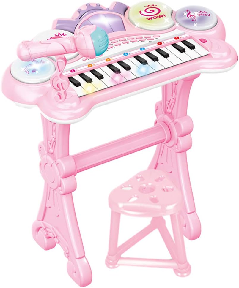 این ست جذاب شامل پیانوی رنگی با ۲۱ کلید، چراغهای LED، میکروفون با کیفیت و ریتمهای متنوع میباشد.