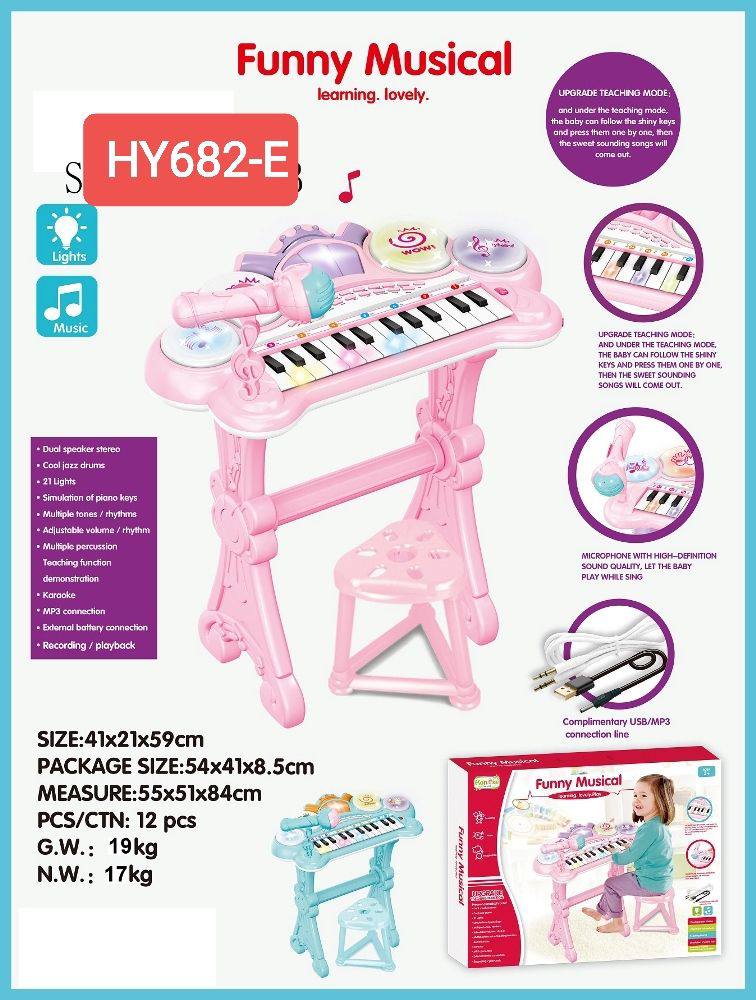 پیانو موزیکال کودک Funny Musical مدل HY682-E با میکروفون و چراغ