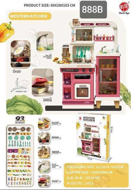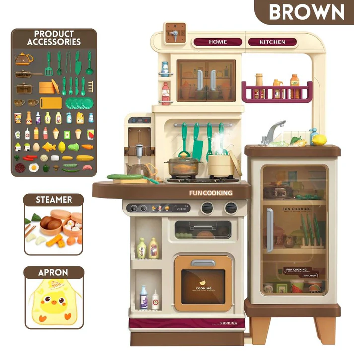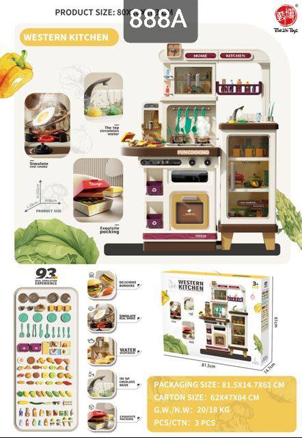 ست آشپزخانه کودک مدل Western Kitchen | آشپزخانه کودکانه با بخار، نور، صدا و ۹۳ تکه لوازم