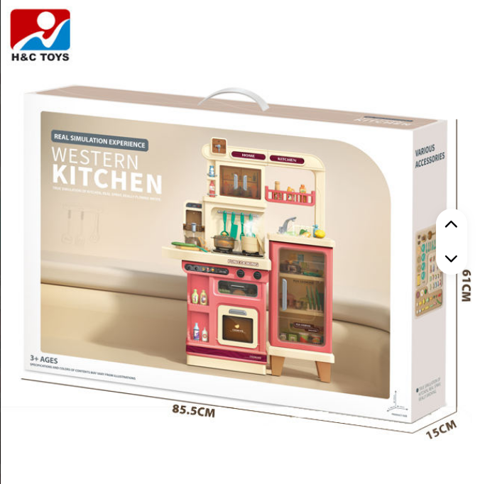 ست آشپزخانه کودک مدل Western Kitchen یکی از کاملترین و باکیفیتترین ستهای آشپزخانه کودکانه است که با الهام از آشپزخانههای واقعی طراحی شده. این ست دارای اجاق گاز، سینک ظرفشویی، یخچال، ماشین لباسشویی، کابینت و ابزارهای آشپزی است که با قابلیت نور، صدا و حتی بخار واقعی (افکت آبجوش)، حس یک آشپز واقعی را به کودک القا میکند.