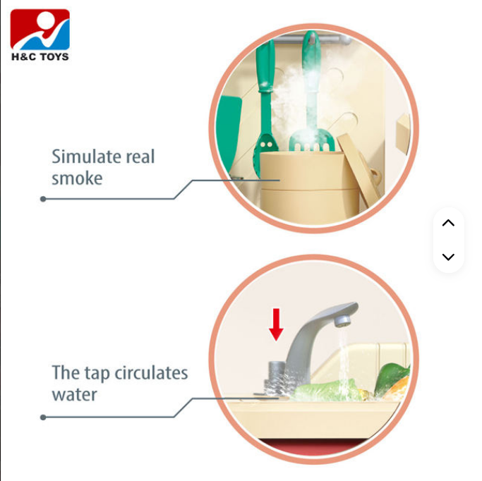 کودک میتواند با استفاده از ۹۳ قطعه متنوع شامل قابلمه، قاشق، چنگال، لیوان، خوراکیهای پلاستیکی و... نقشآفرینی کند و در کنار سرگرمی، مهارتهایی مثل هماهنگی چشم و دست، تخیل، همکاری گروهی و مسئولیتپذیری را بیاموزد.