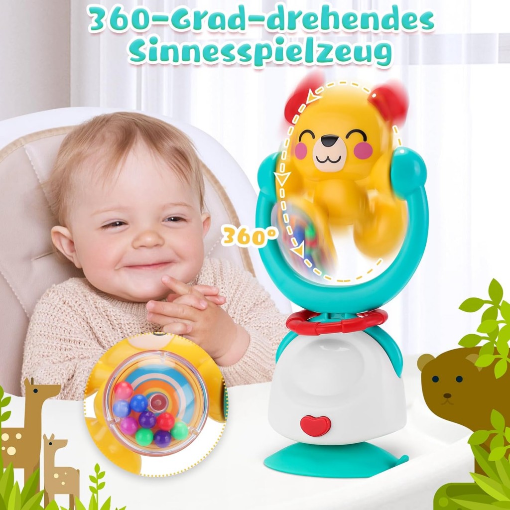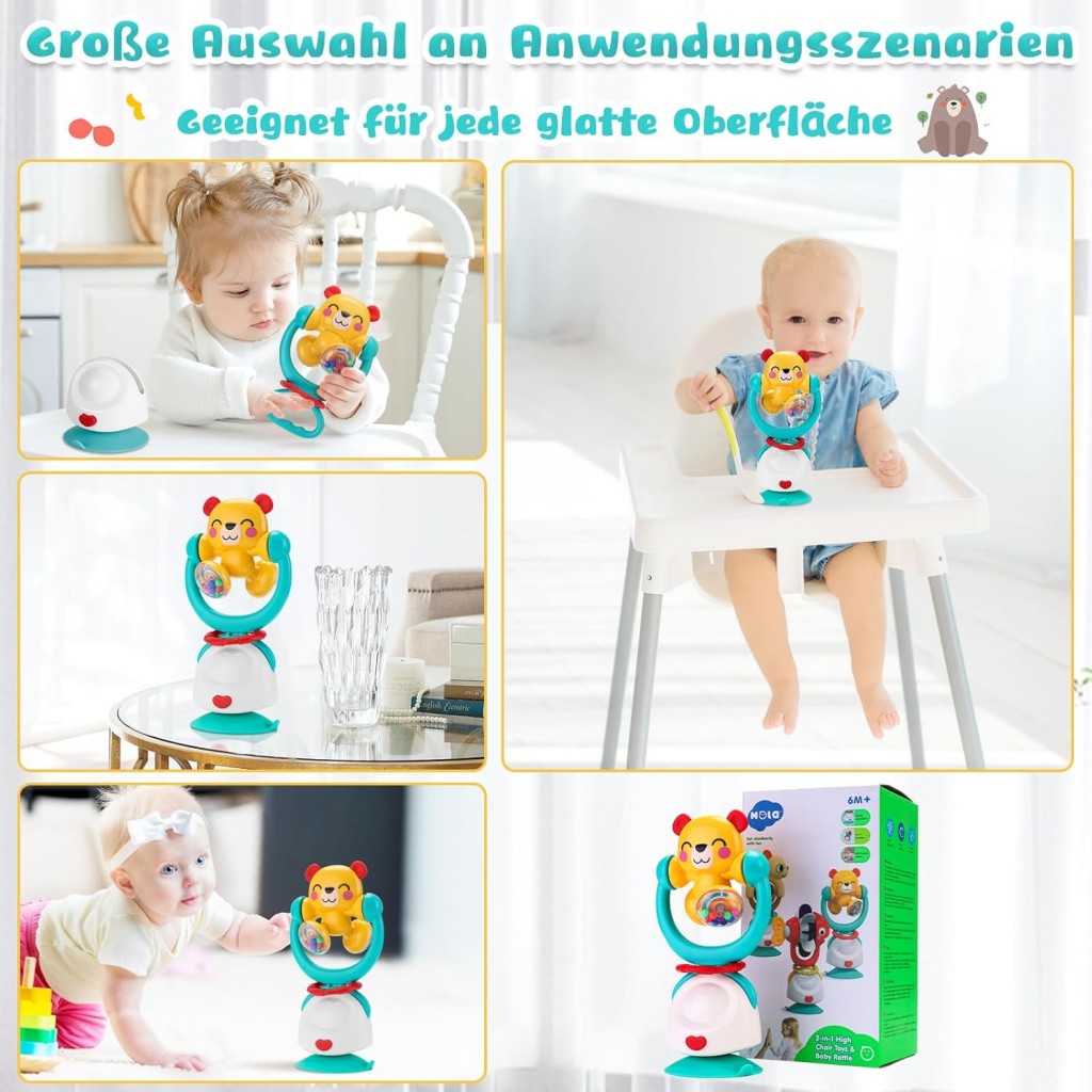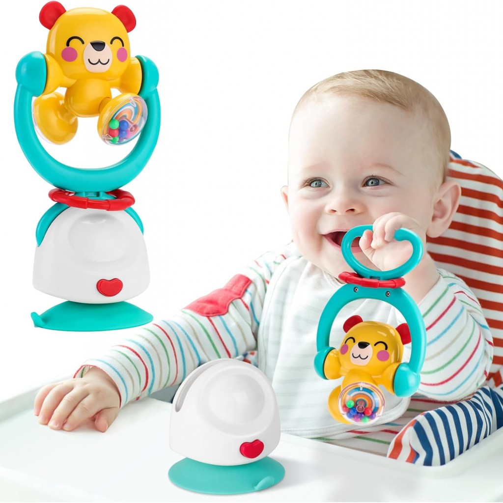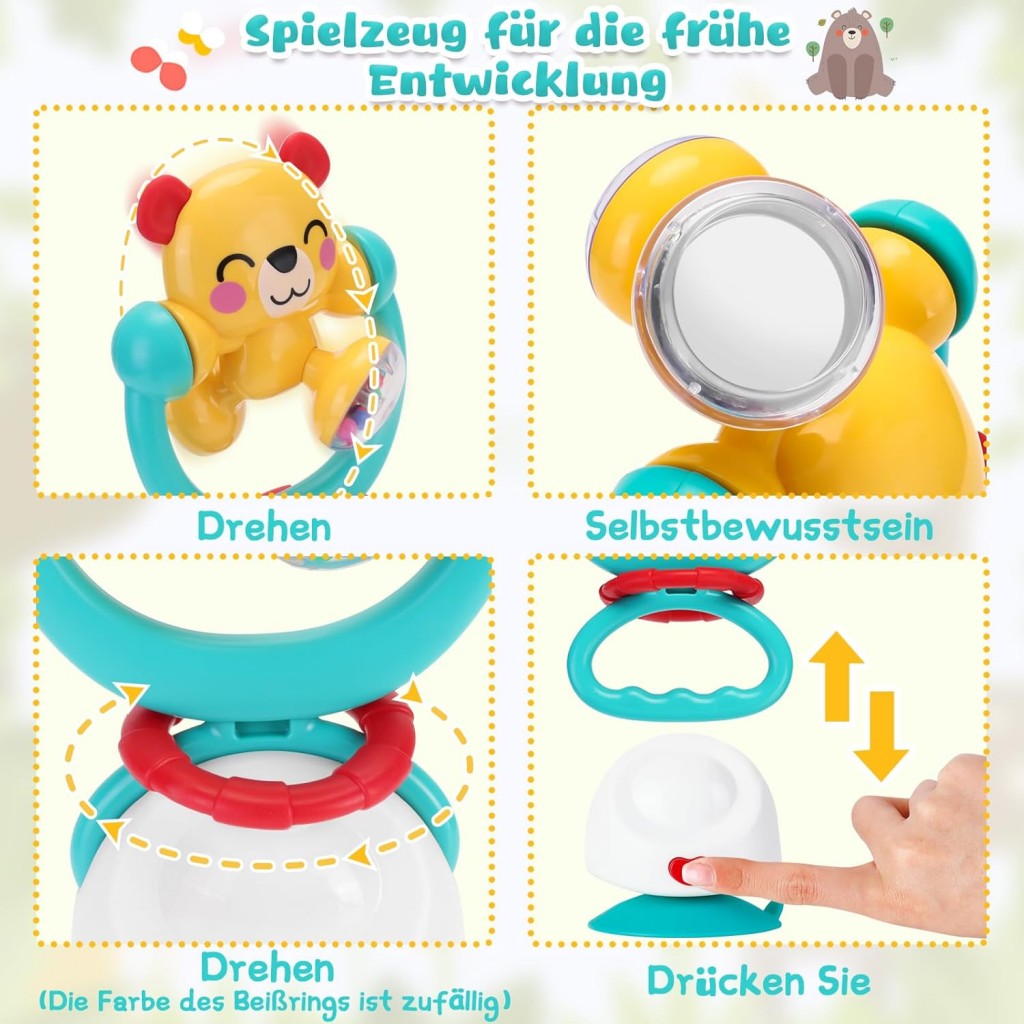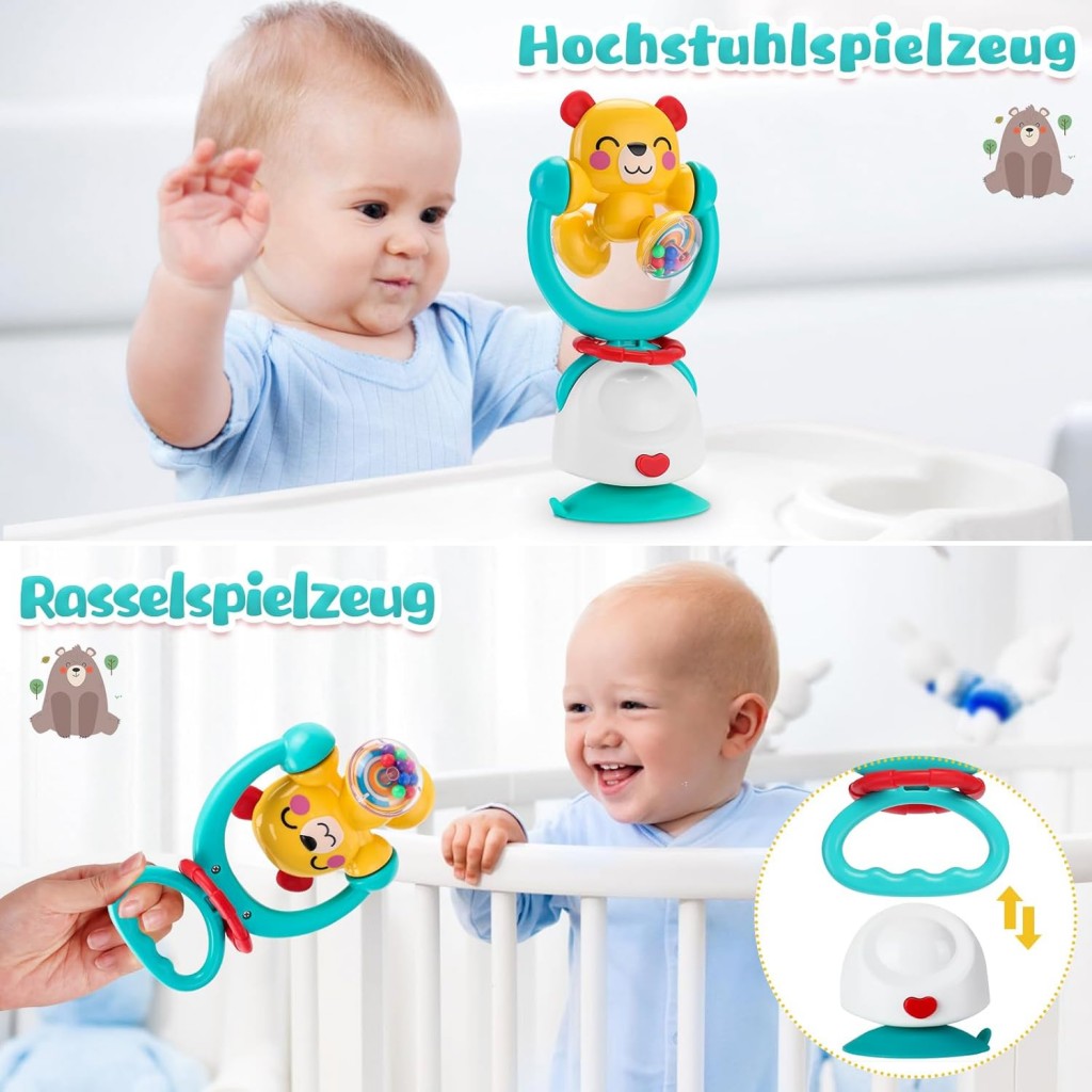 ویژگیها: چرخش ۳۶۰ درجه، مهرههای رنگی صدادار، دندانگیر سیلیکونی، قابلیت جدا شدن از پایه