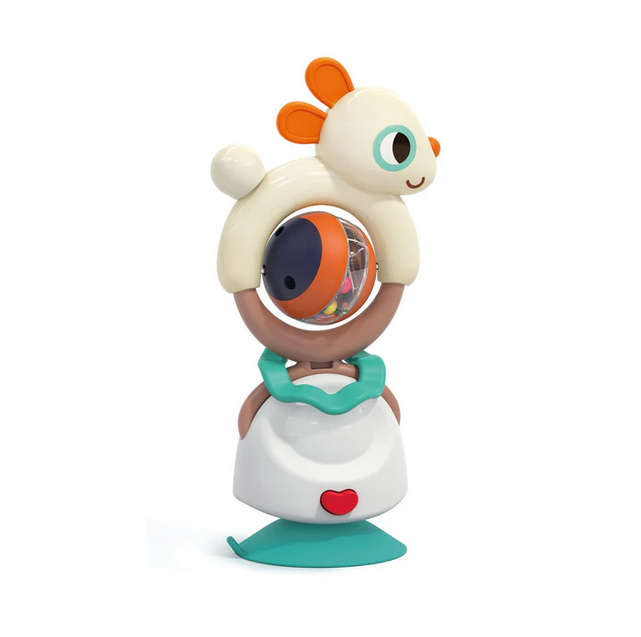 کودک با لمس یا تکان دادن بخش خرگوش، توپ چرخان را به حرکت در میآورد و مهرههای رنگی را به گردش درمیآورد.