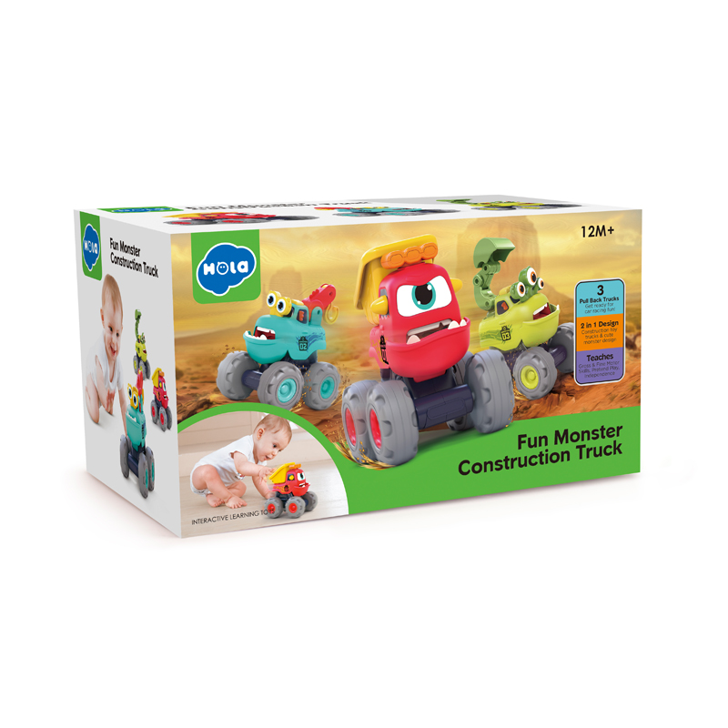 کامیون هیولایی ساختمانی هولا مدل Fun Monster Construction Truck یک اسباب بازی تعاملی و فریکشن بدون باتری است که مناسب کودکان بالای ۱۸ ماه میباشد. این کامیون با بدنه تاشونده، آینه آفتابگردان، مهرههای چرخان و بازی مخفیکاری قورباغه، مهارتهای حرکتی ظریف و هماهنگی چشم و دست کودک را تقویت میکند.