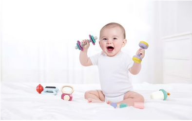 نوزاد میتواند هر یک از جغجغهها یا دندانگیرها را در دست گرفته و با تکان دادن یا گاز گرفتن بازی کند.
