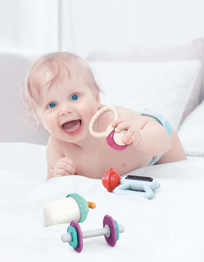 ۹ قطعه متنوع: شامل دمبل، حلقه، شیکر و دندانگیر برای تحریک حواس