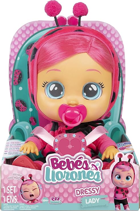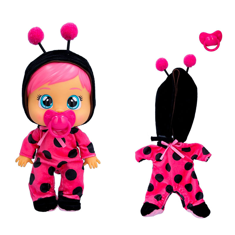 این عروسک زیبا با چهرهای بامزه، موهای آبی و لباس کفشدوزکی نرم، میتواند اشک بریزد و بیش از 10 صدای کودکانه مختلف از خود تولید کند.