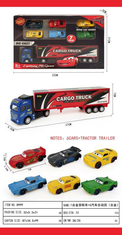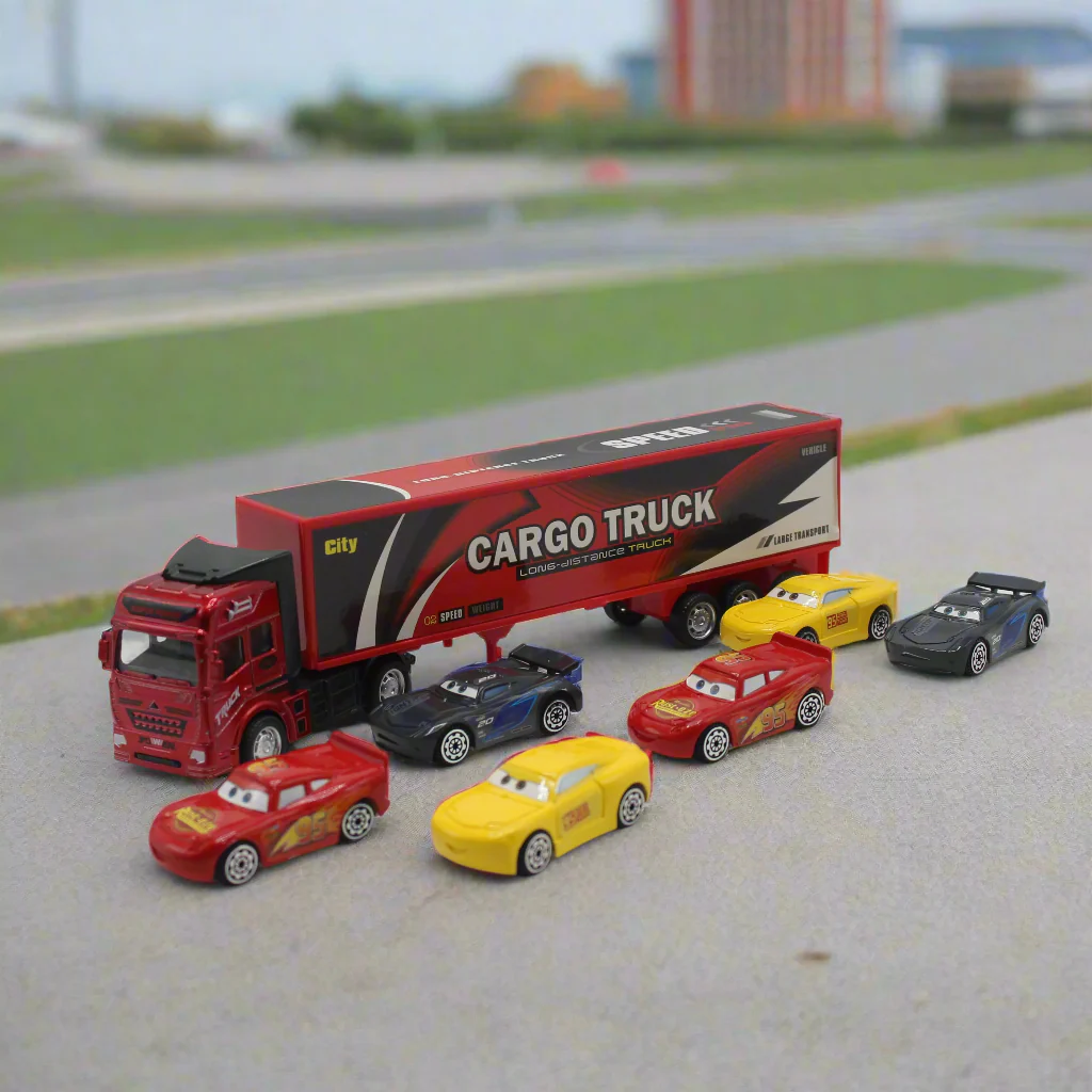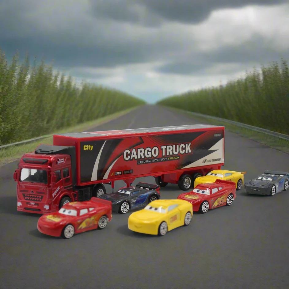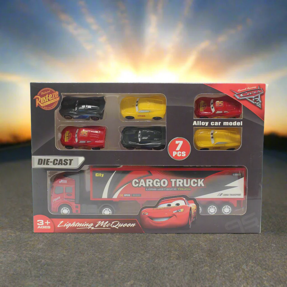 این ست شامل یک کامیون بزرگ (Cargo Truck) با طراحی جزئیات واقعی و ۶ ماشین فلزی (Die-cast) از شخصیتهای دوستداشتنی لایتنینگ مککویین و دوستانش میباشد.