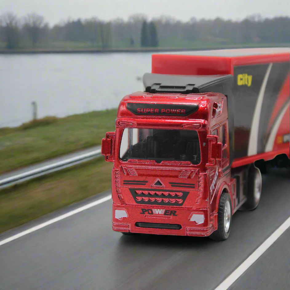 کودک میتواند ماشینها را داخل تریلی بار کند و به سفر خیالی بفرستد یا مسابقههای هیجانانگیز با ماشینهای فلزی برگزار کند. این ست برای بازی فردی و گروهی بسیار جذاب است.