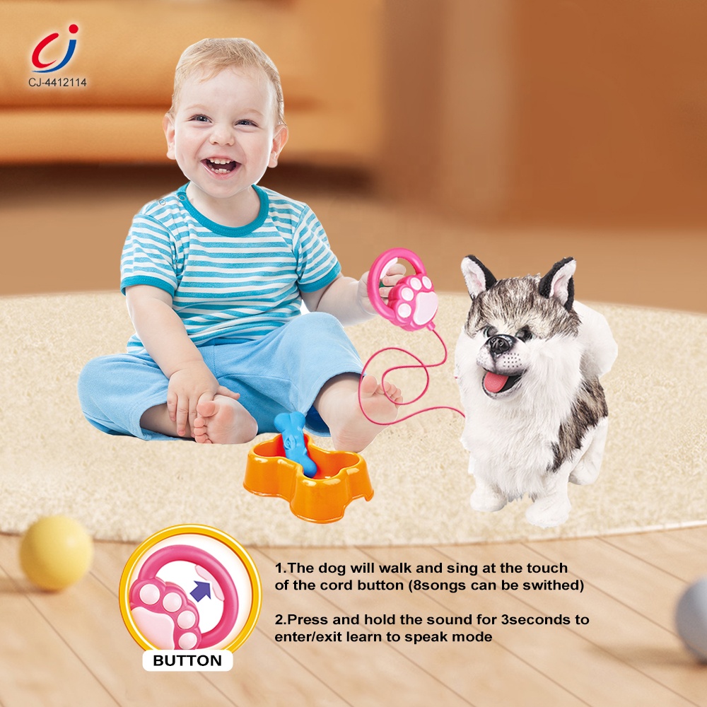 عروسک سگ کنترلی هاسکی مدل Furry Pets با قلاده و ظرف غذا – عروسک موزیکال و متحرک کودک