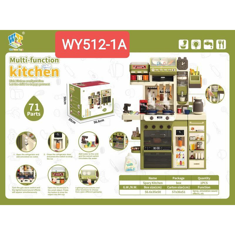 اسباب بازی آشپزخانه کودک چندکاره مدل WY512-1A با 71 قطعه و افکت بخار