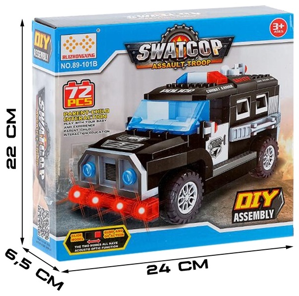 لگو ماشین پلیس SWAT مدل 89-101B از برند RuiZhongXing، یک بازی ساختنی جذاب برای کودکانی است که عاشق ماجراجویی و نقشآفرینی در دنیای پلیس هستند.