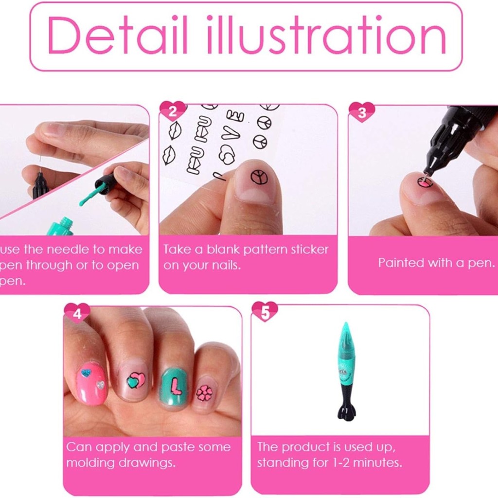 ست قلم طراحی ناخن و لاک کودک مدل Nail Art Pens 329 به همراه لاکخشککن