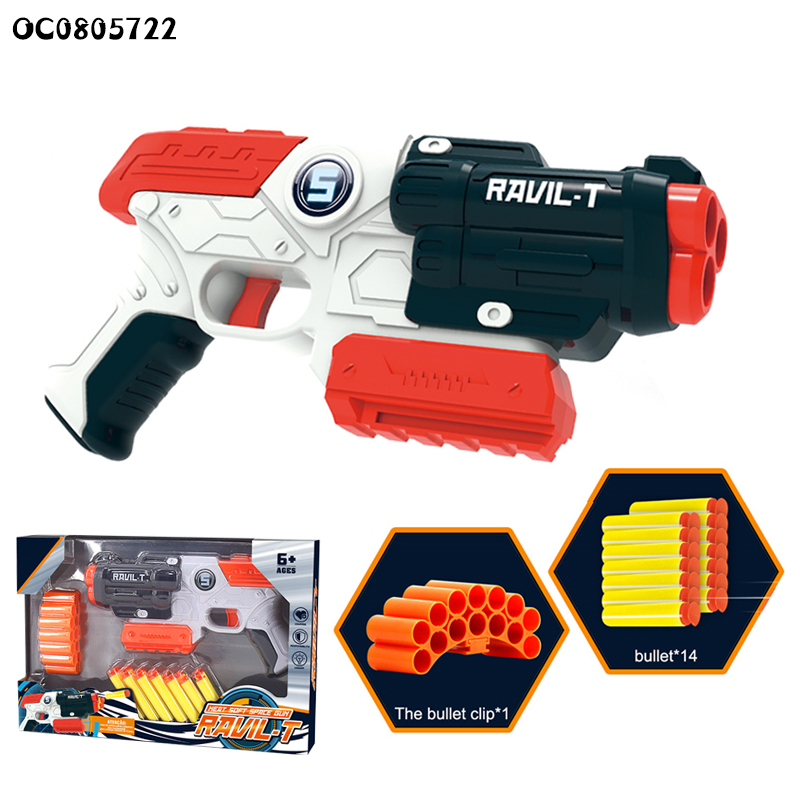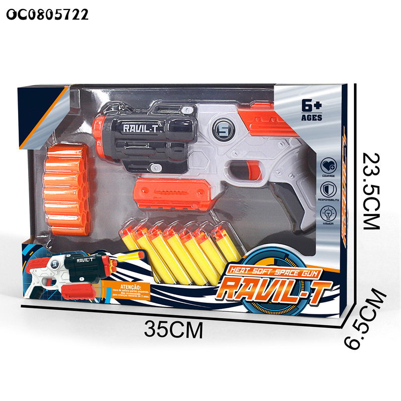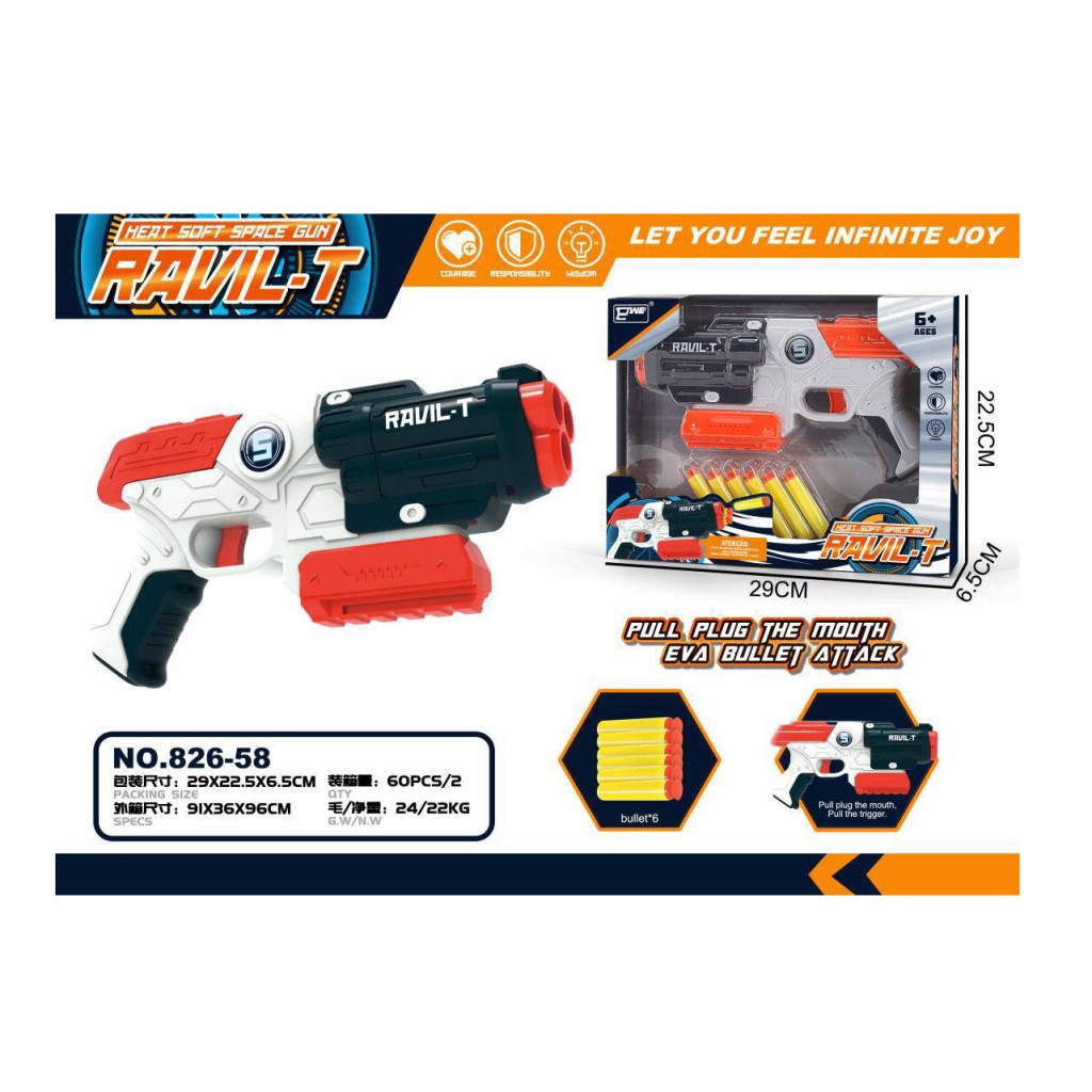 تفنگ اسباببازی فومی مدل RAVIL-T 826-58 | تفنگ فضایی Soft Gun با ۶ تیر اسفنجی