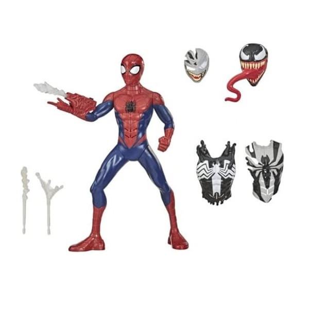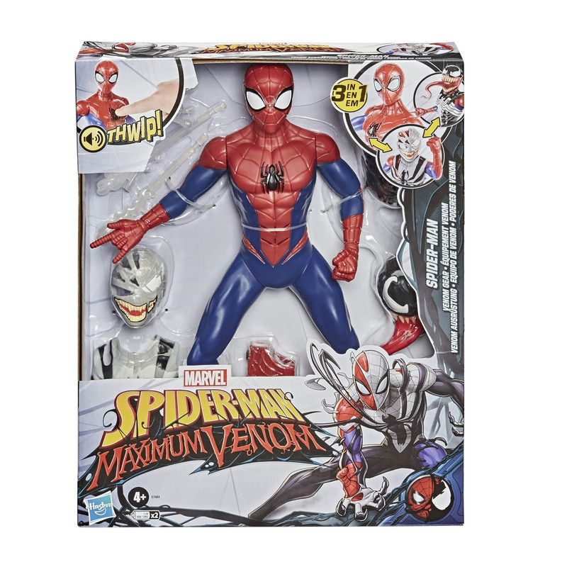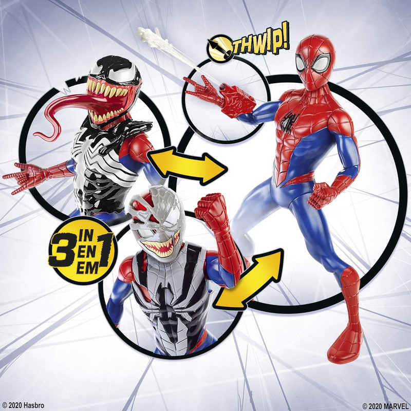 این محصول دارای لوازم جانبی متنوع شامل ماسک ونوم، قطعات متحرک و افکتهای تار عنکبوت است که به کودک امکان میدهد اسپایدرمن را به سه حالت مختلف تغییر دهد و داستانهای مهیج دنیای مارول را بازآفرینی کند.