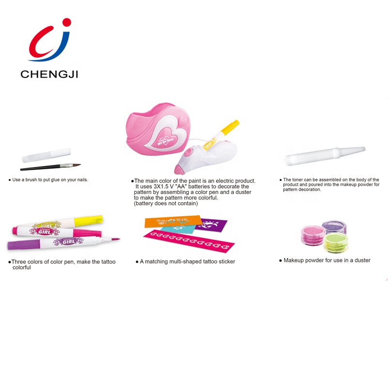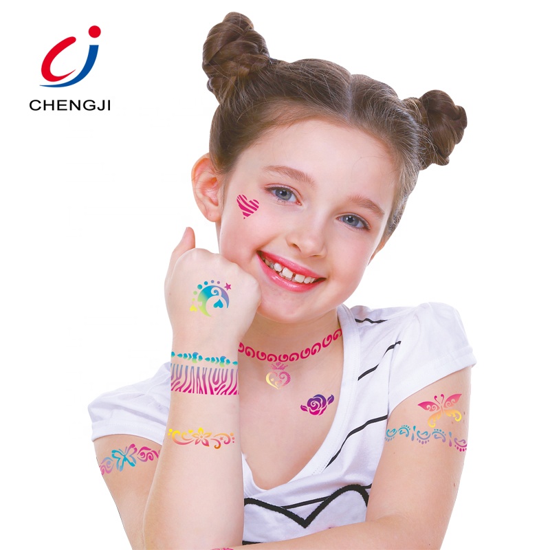 این ست کامل به کودکان امکان میدهد با استفاده از قلمها، رنگها، شابلونهای متنوع و اکلیلهای رنگی خالکوبیهای فانتزی و جذاب طراحی کنند.