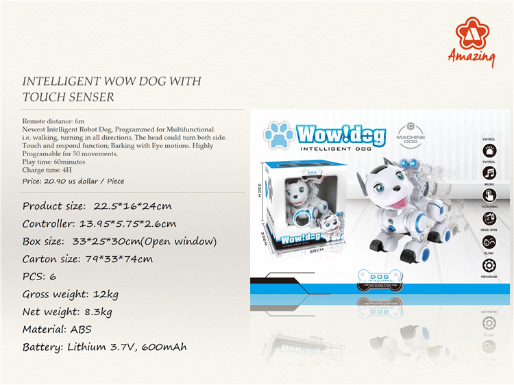 سگ رباتیک هوشمند Wow!Dog مدل K10 | اسباببازی هوشمند موزیکال و لمسی